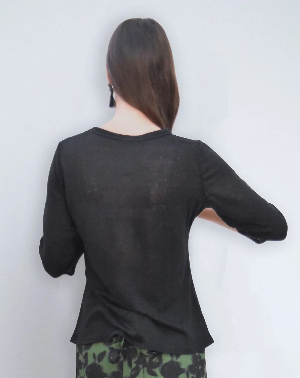 Top coupe classique , col rond, manches trois quart