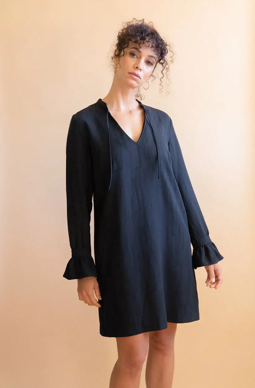 Poignets évasés et ceinture en tissu pour cintrer la robe