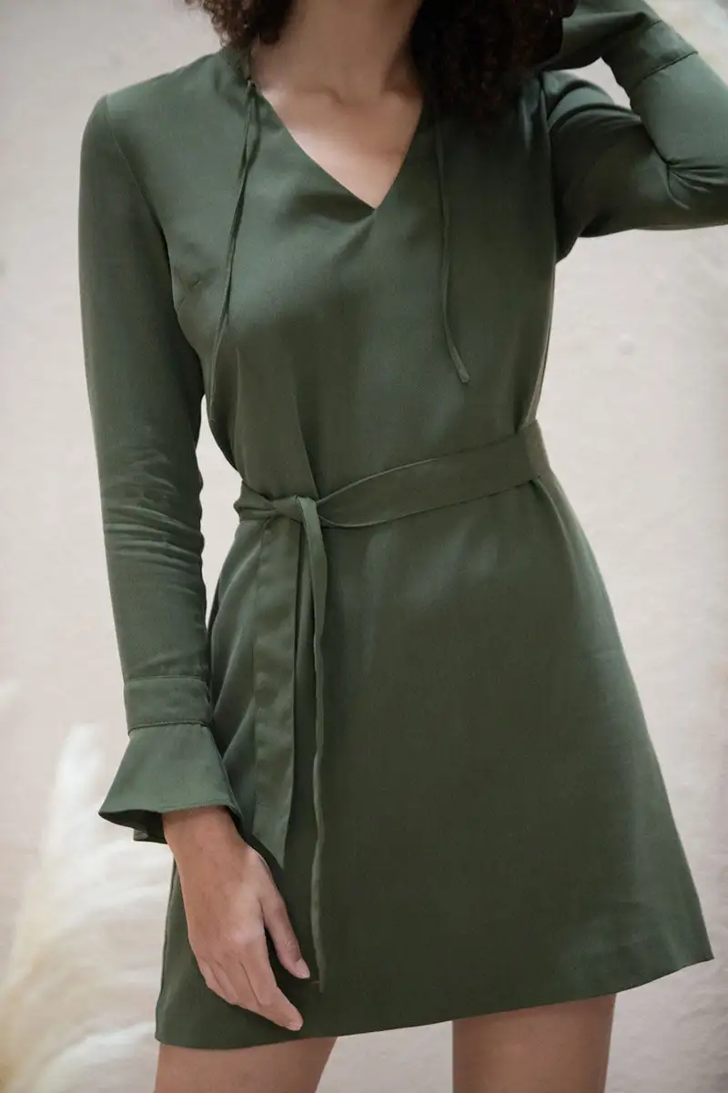 Poignets évasés et ceinture en tissu pour cintrer la robe