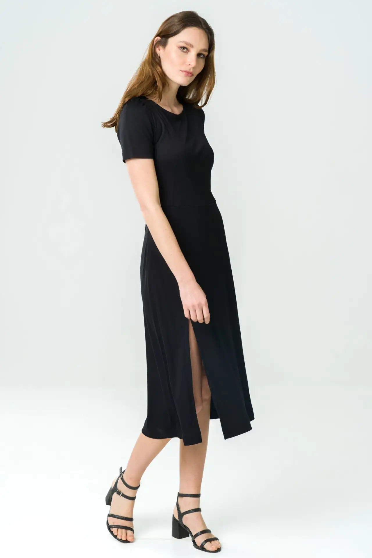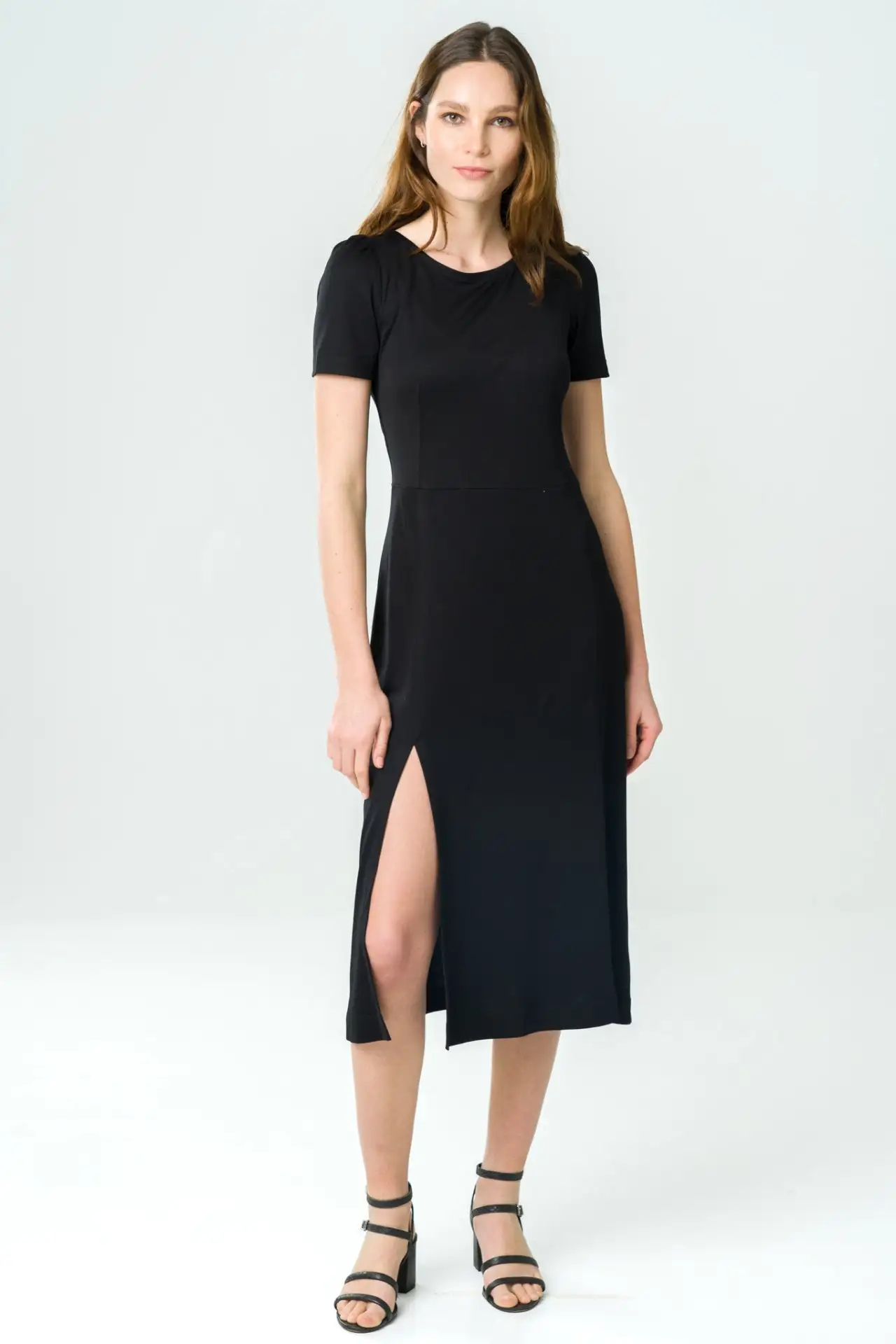 Robe rond mi-longue à la coupe cintrée et fendue sur le côté