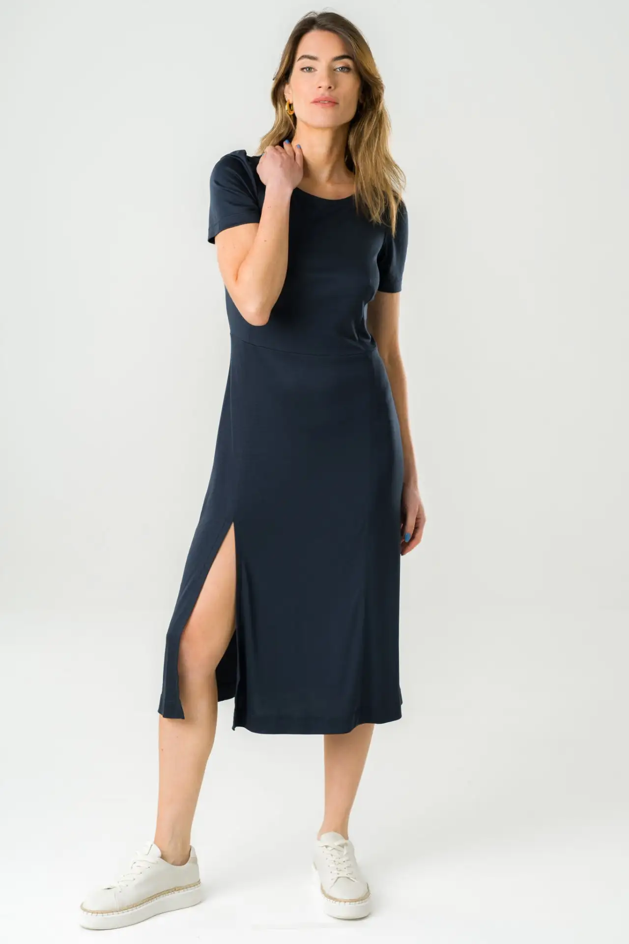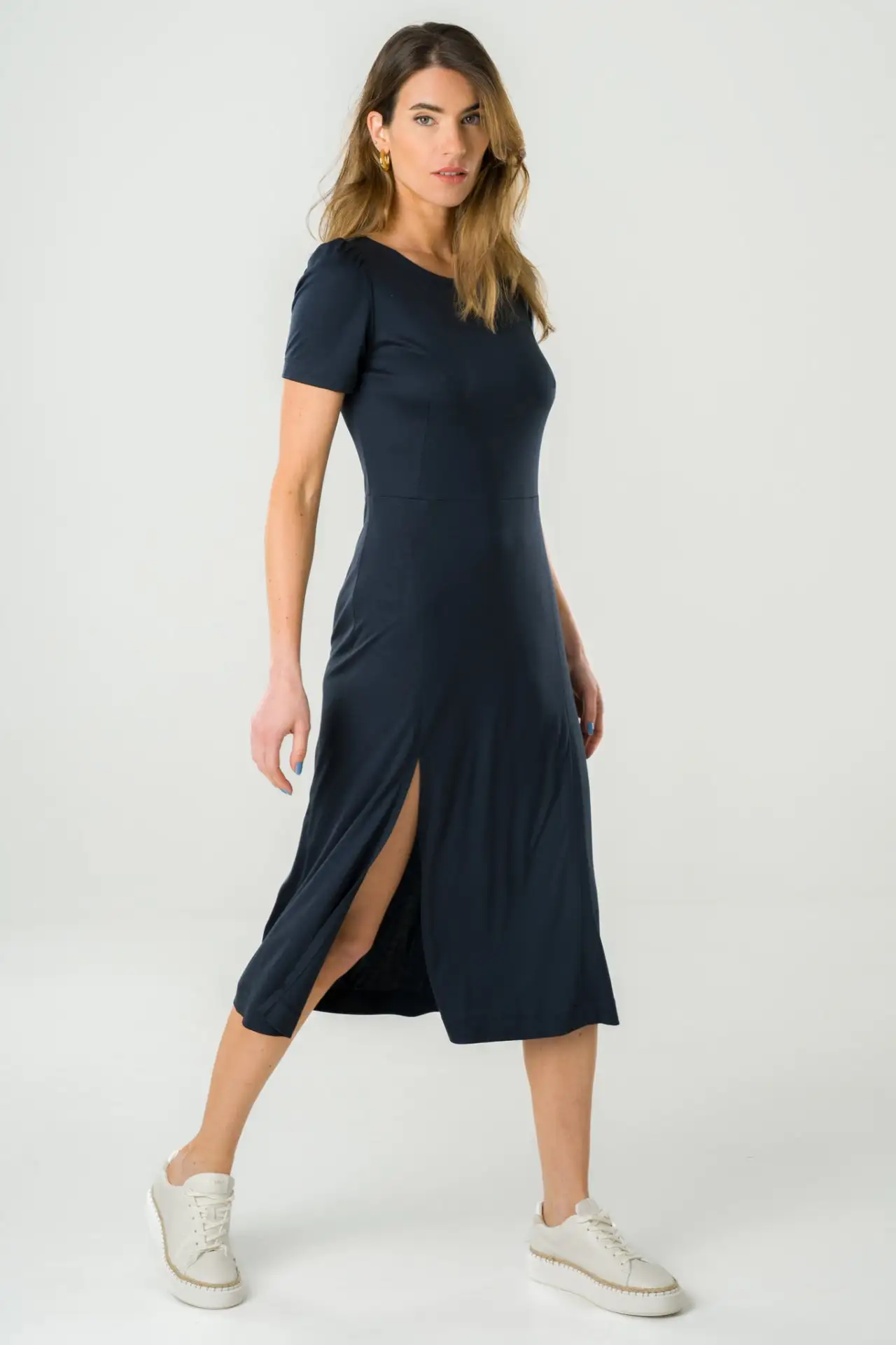 Robe rond mi-longue à la coupe cintrée et fendue sur le côté