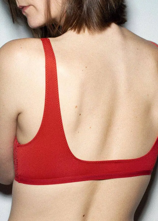 dentelle est italienne : 88% polyamide recyclé, 12% élasthanne recyclé