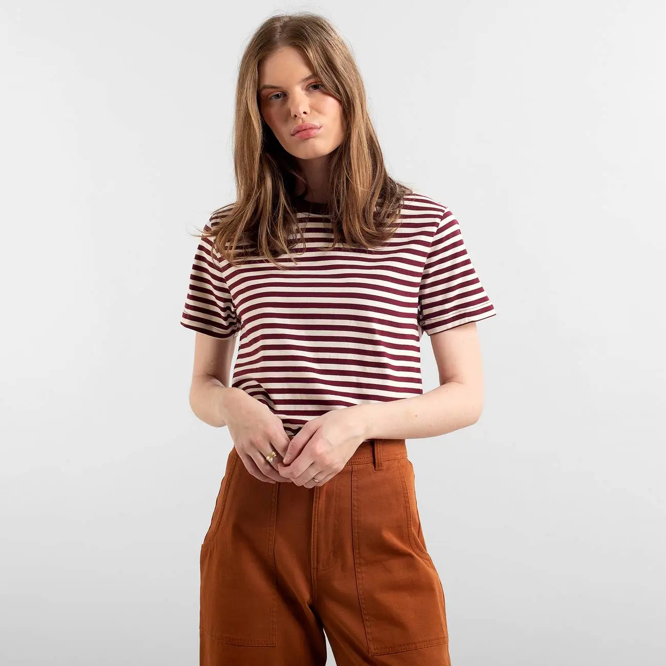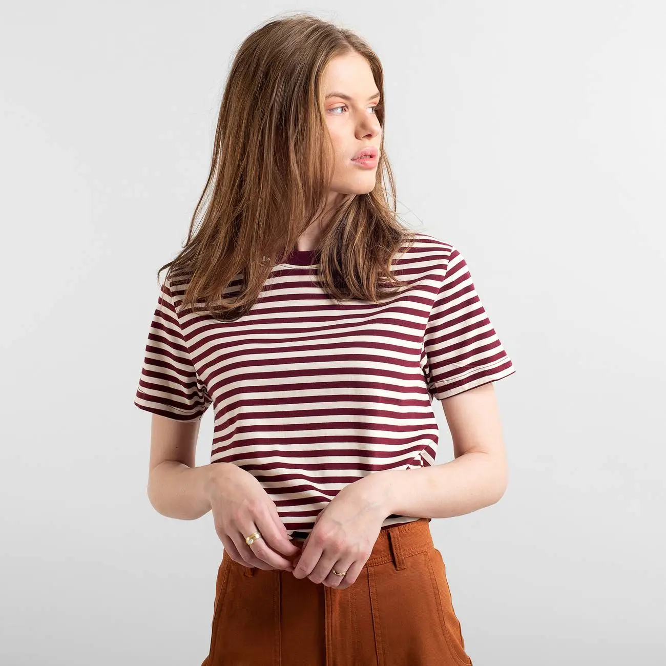 Coupe classique ; col rond ; manches courtes