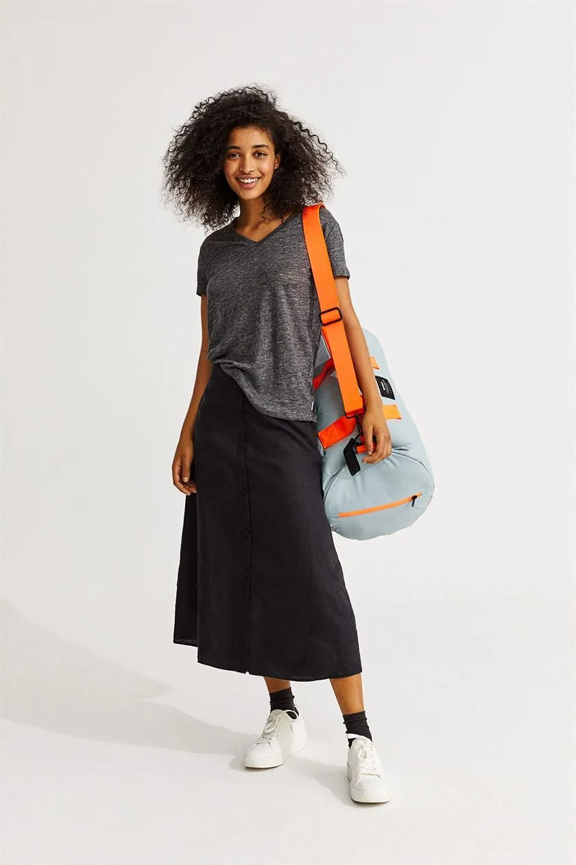 Le lin est une matière naturelle dont la production et la culture demande peu d’énergie, une faible utilisation de pesticide et est peu consommateur d’eau. Réputé pour sa résistance et sa légèreté, il revient de plus en plus dans le textile comme une alternative au coton. La France est le premier producteur mondial de lin ce qui permet également un sourçage de matière première locale.