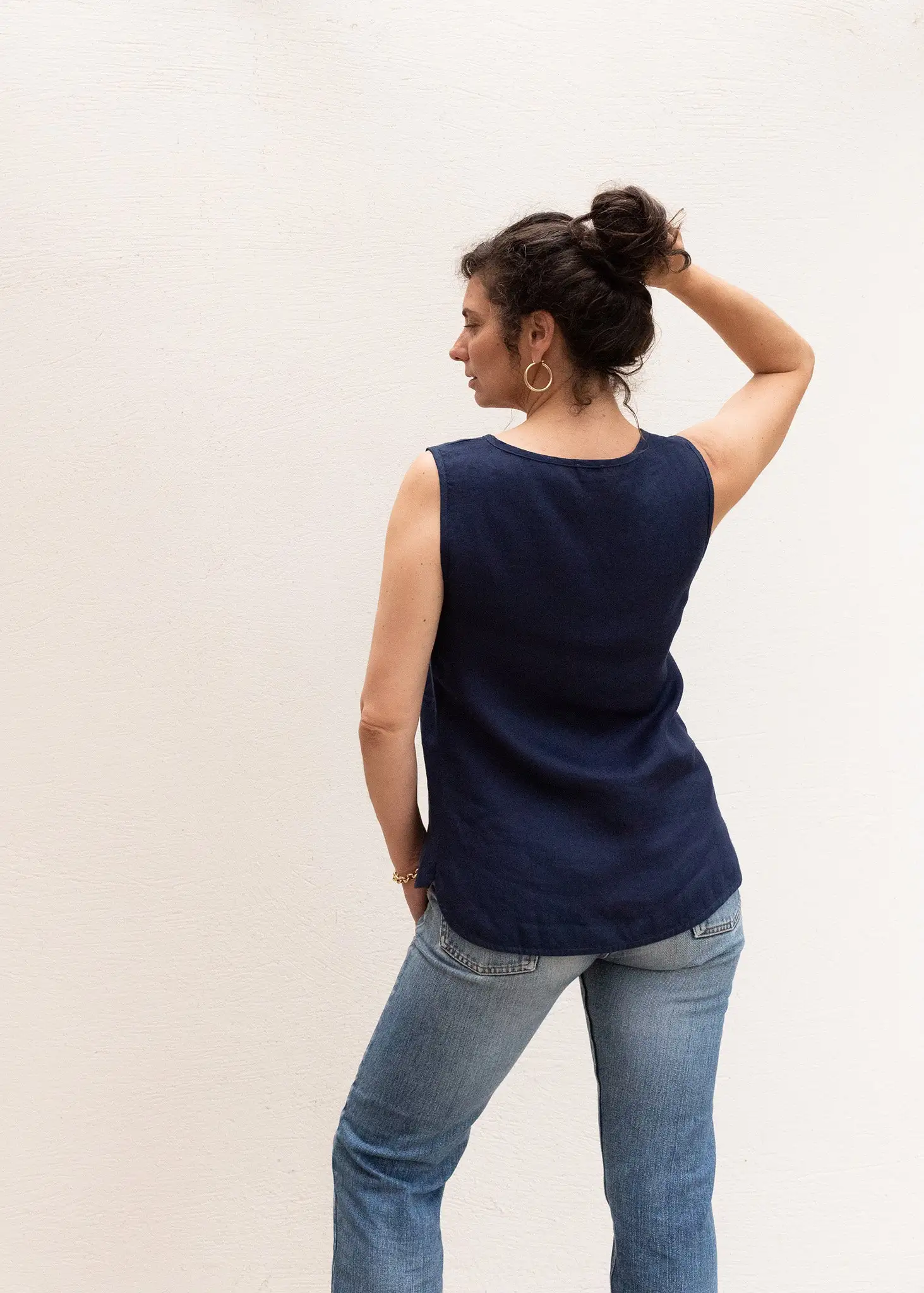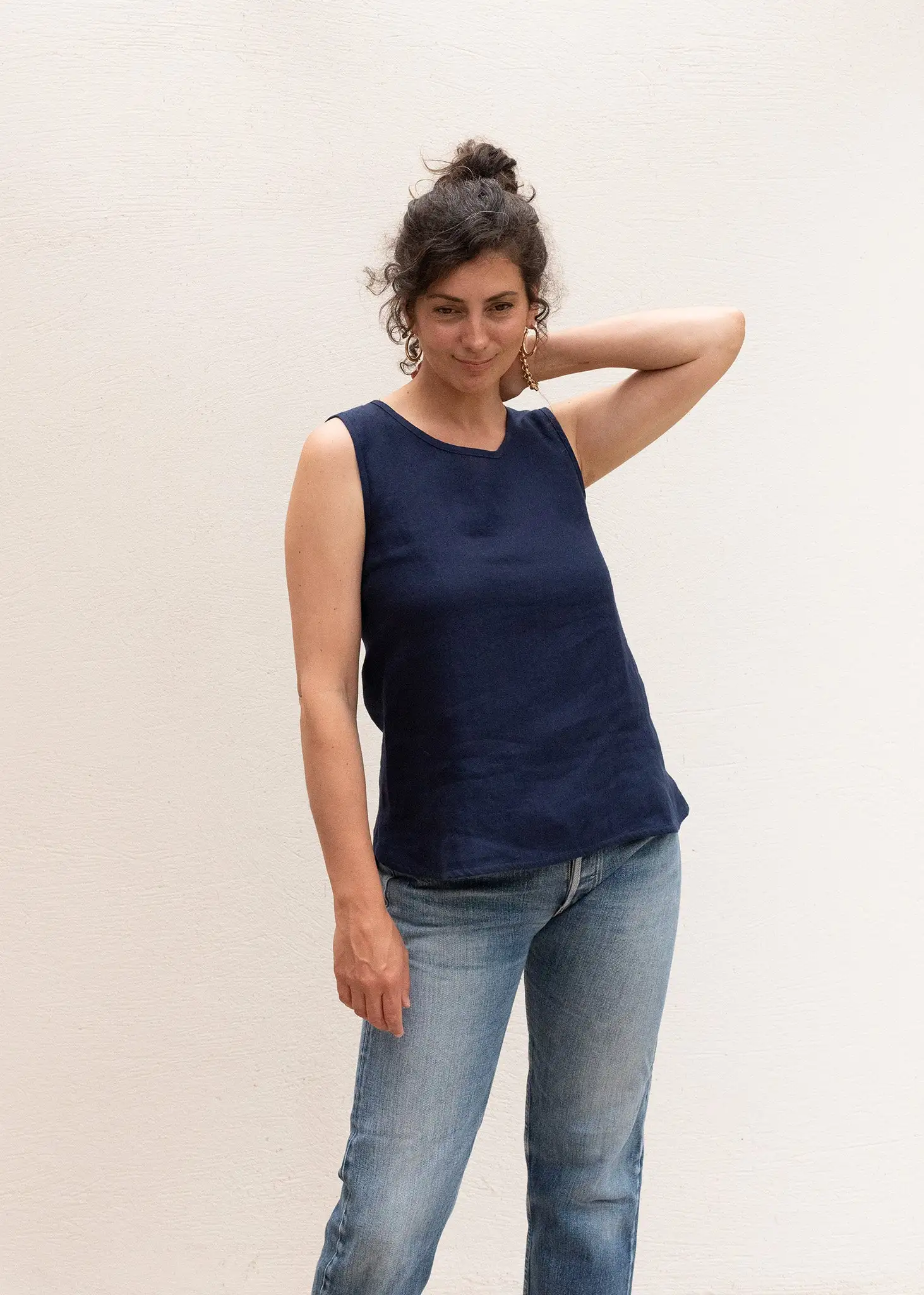 Le lin a été cultivé entre Caen et Amsterdam puis transformé en fil, teinté et tissé en Lituanie. Enfin, la confection a été réalisée en Pologne. Le fil à coudre et les étiquettessont en coton biologique.