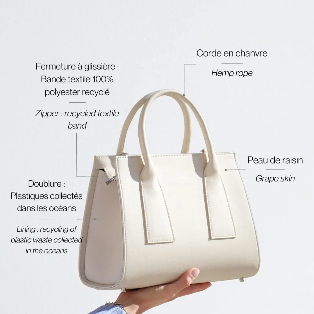 Intérieur doublé pour renforcer la structure du sac• Colle biosourcée : Latex naturel, colle véganematière végétale de raisin