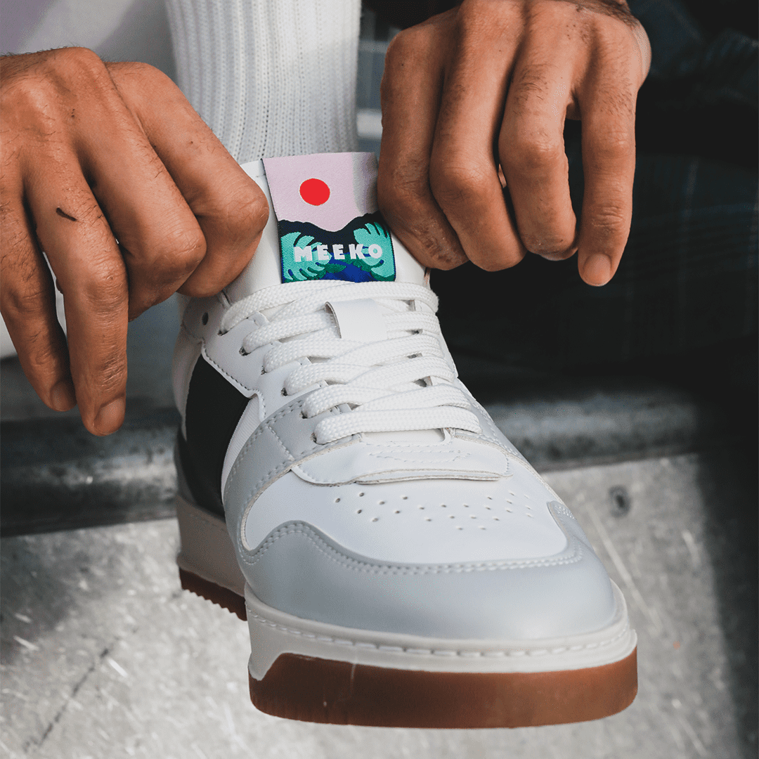 % cuir de pomme / % Nylon recyclé / % Polyester recyclé / % Caoutchouc recyclé / % Caoutchouc naturel