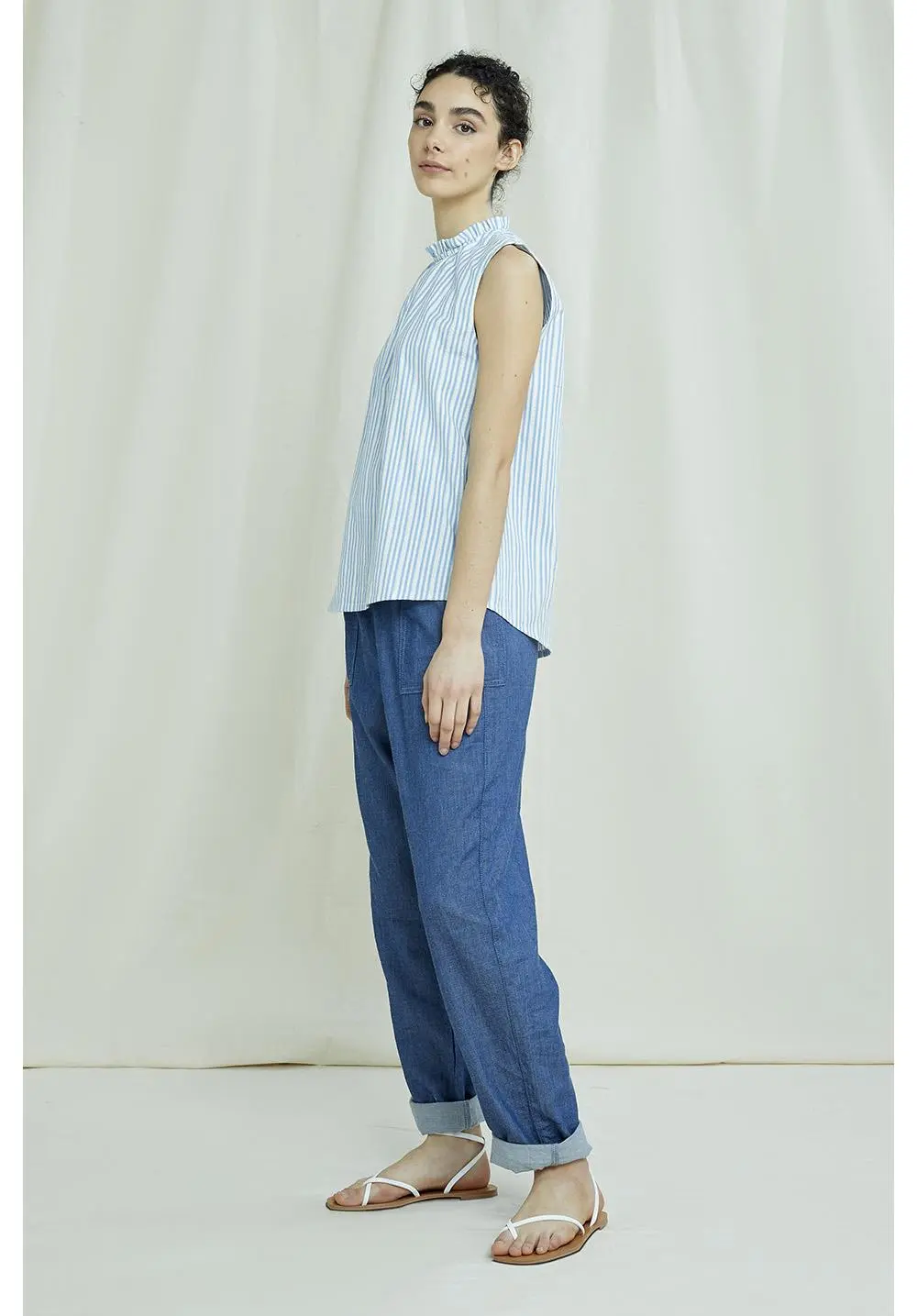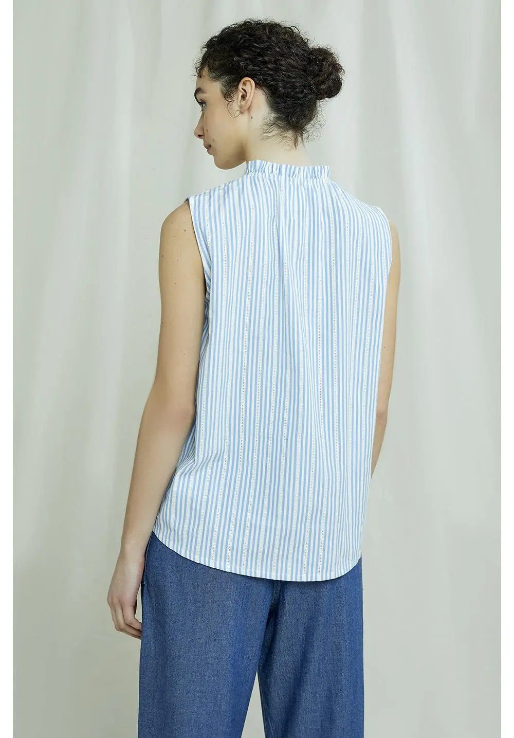 Chemisier sans manches à encolure fermée par un bouton en noix de coco écologique