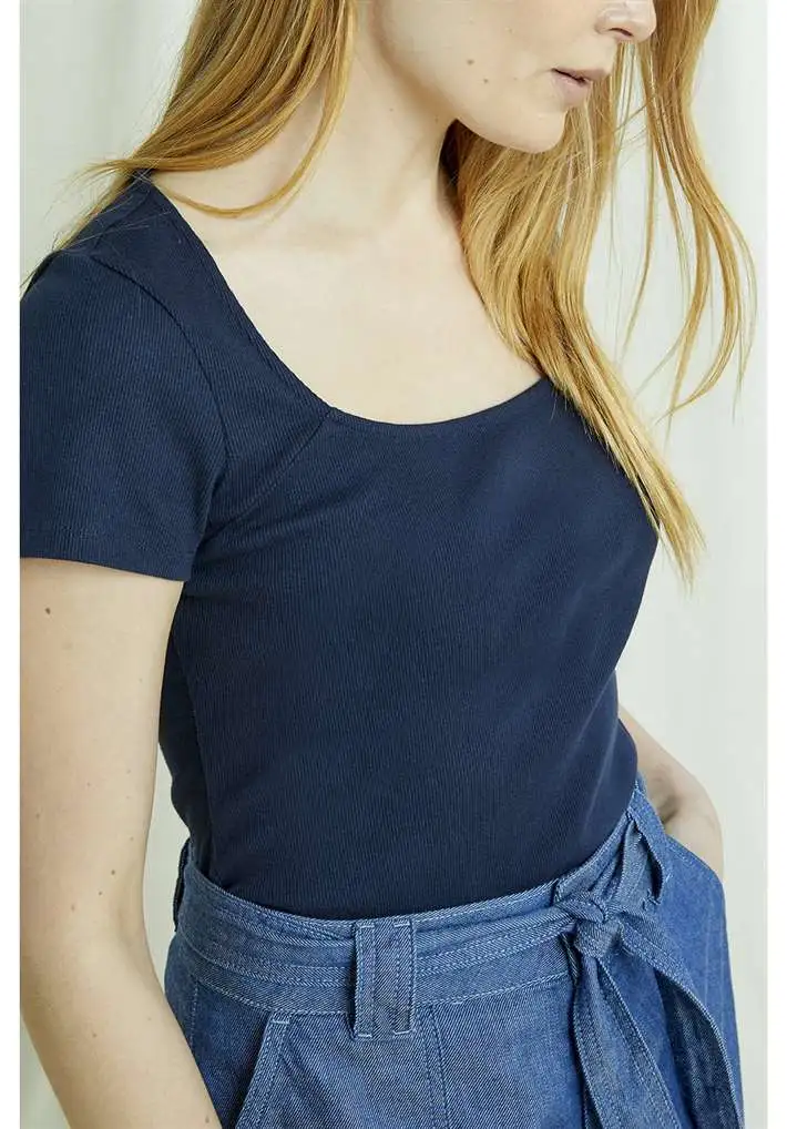 Top ajusté, confortable et respirant, avec une fine texture côtelée.
