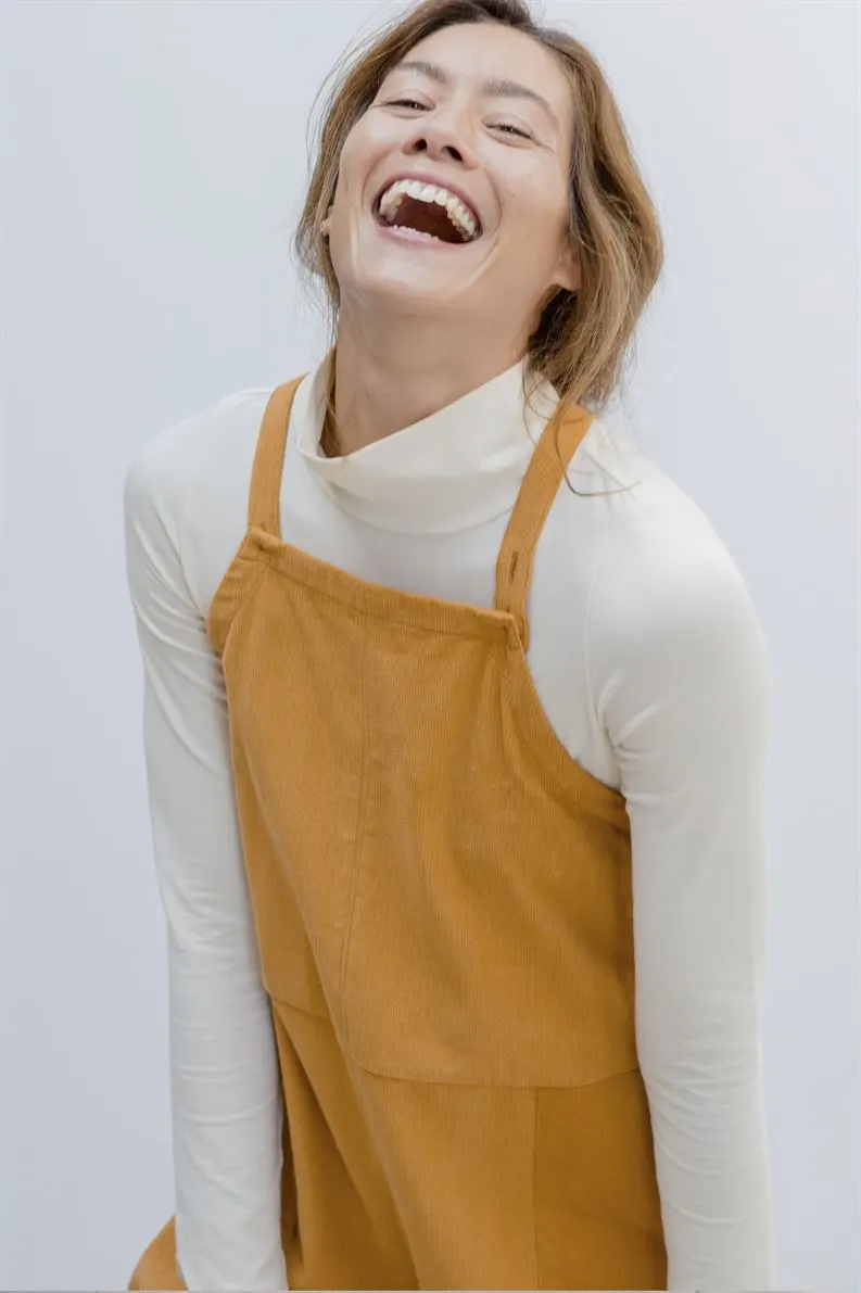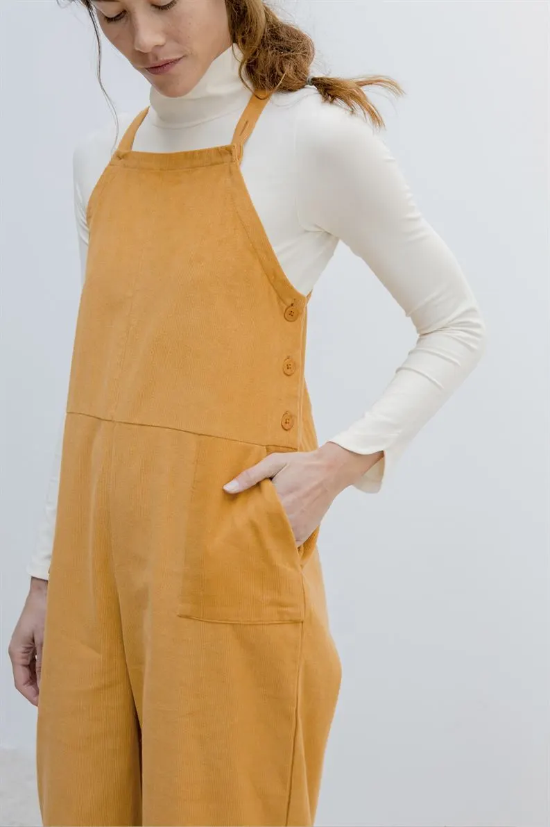 Salopette en velours côtelé fermée sur le côté avec boutons